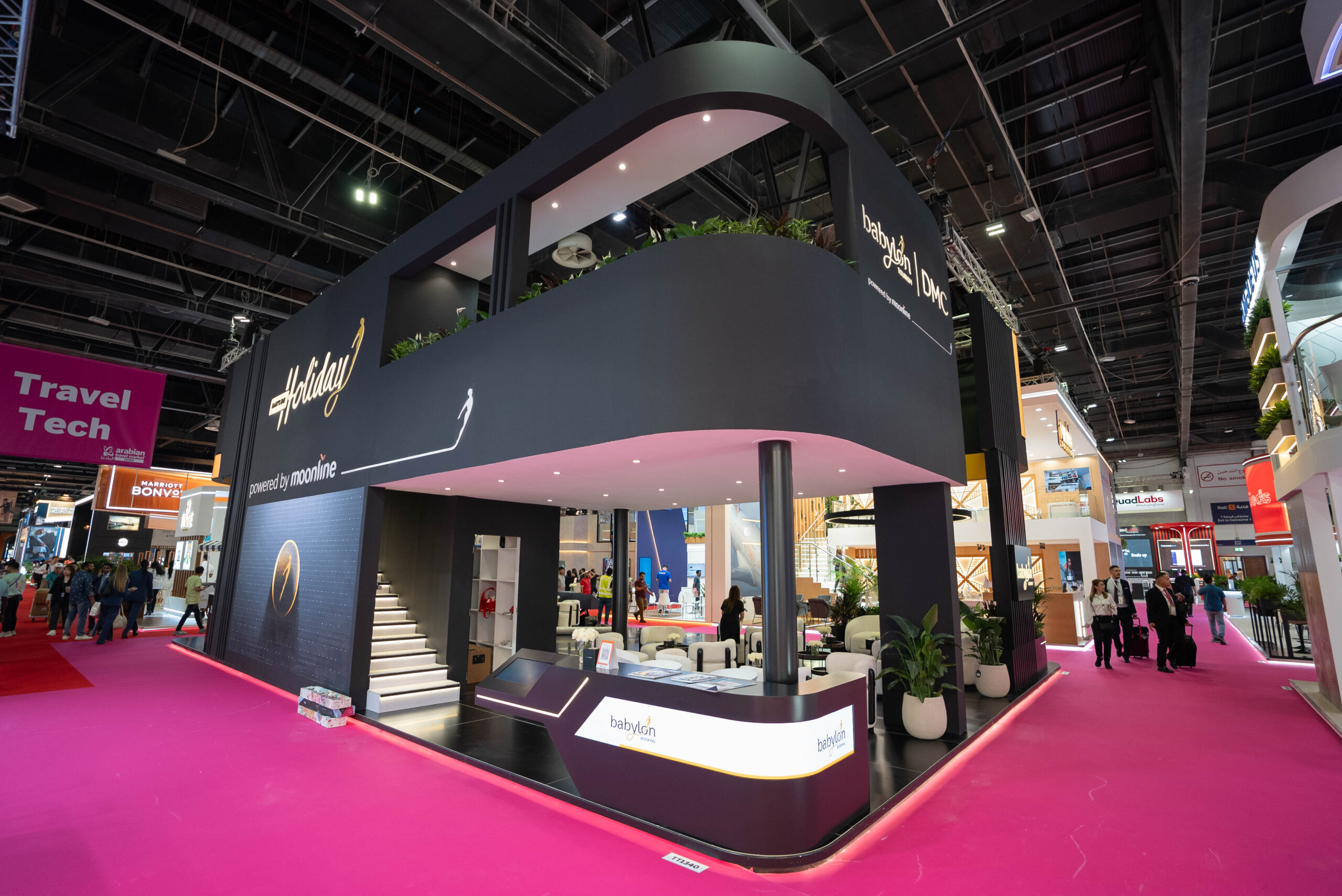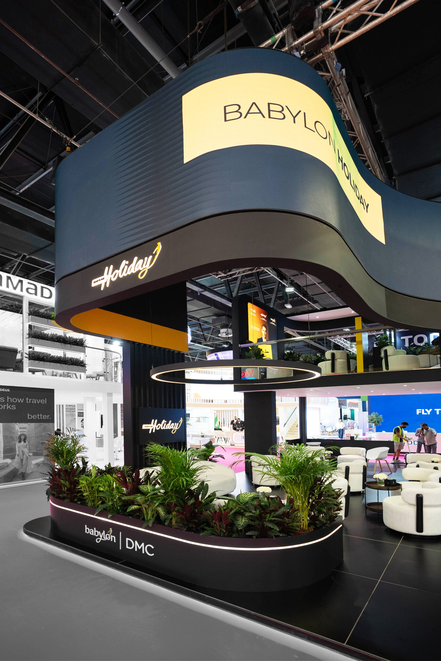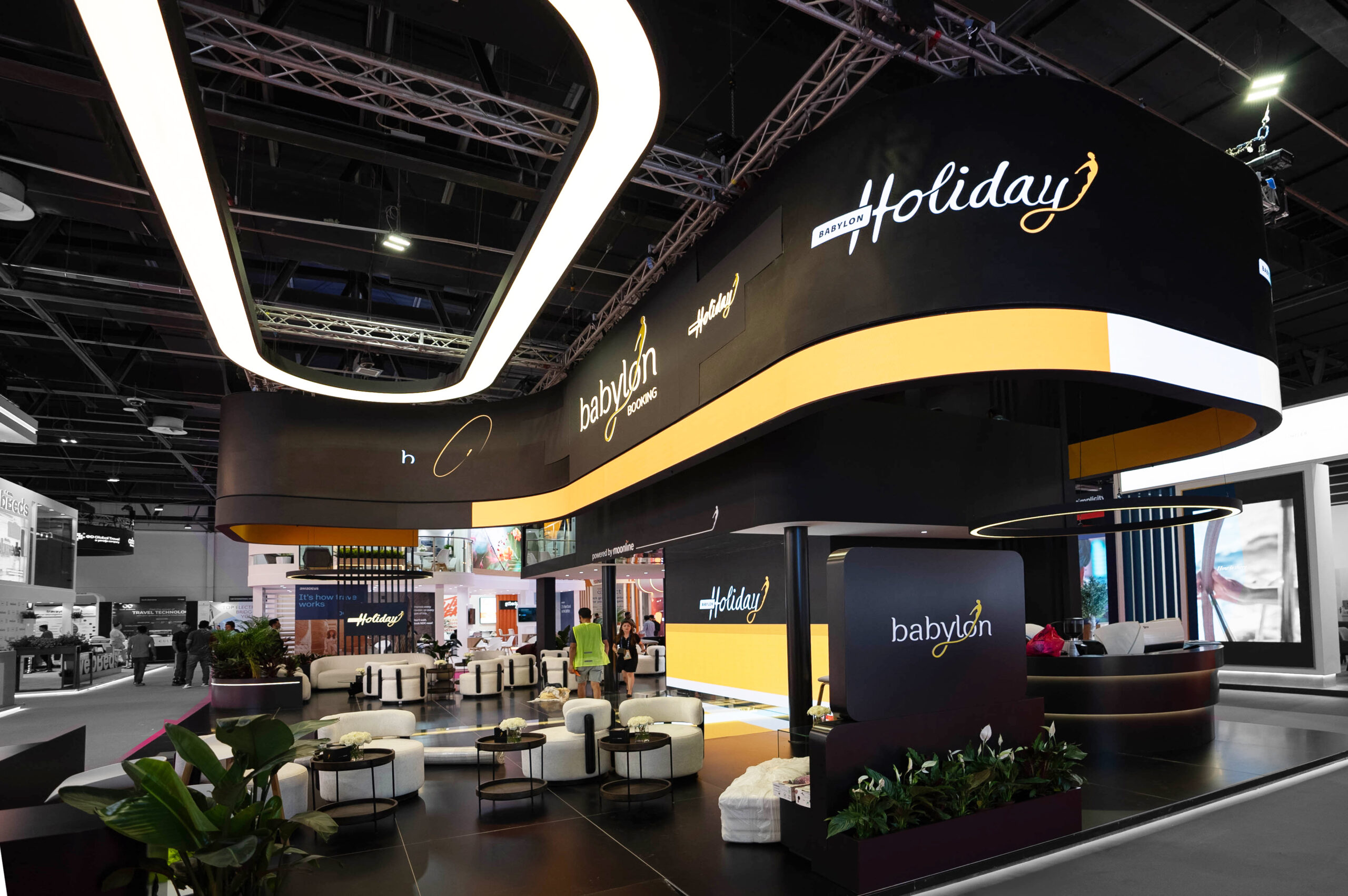 Expertly crafted by our in-house Dott& production team, we’re proud to have designed and delivered an unforgettable experience for Babylon Booking, one of our valued clients. By integrating a 50+ SQM flexible LED screen with strategically curated content, we maximized the brand’s visibility and engagement. Complemented by custom-built furniture, the space achieved a seamless blend of sophistication and functionality.
